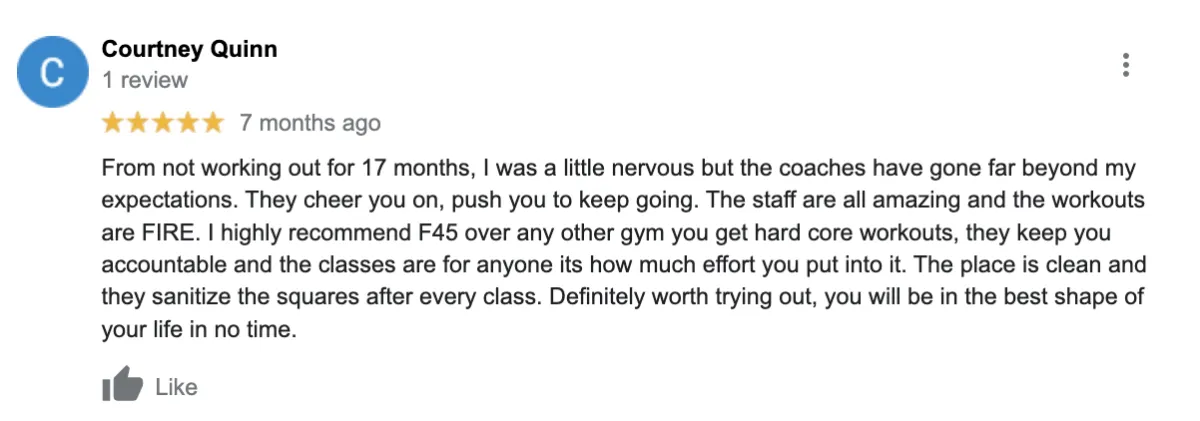 Whatever your level of fitness - whether you're a frequent gym bunny or complete fitness newbie, F45 was designed to get you RESULTS! And you'll leave every visit with a smile on your face!
